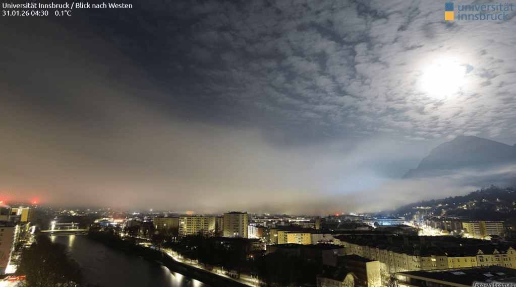 In der Nacht von Freitag auf Samstag, 31. Jänner 2026, fiel in Innsbruck innerhalb einer Stunde anfangs dichter Nebel ein, der bald anhob und in tiefbasigen Stratus (Hochnebel) überging. Das war in den Wettermodellen schlecht zu sehen, zumal bis zur Ankunft vom Nebel stetiger Talauswind wehte. Begünstigt wurde der Nebel vom Oberland aber von einer gealterten Okklusionsfront, die am Vorabend dort leichte Niederschläge brachte. Hinzu kam leichtes Tauwetter in den Niederungen.