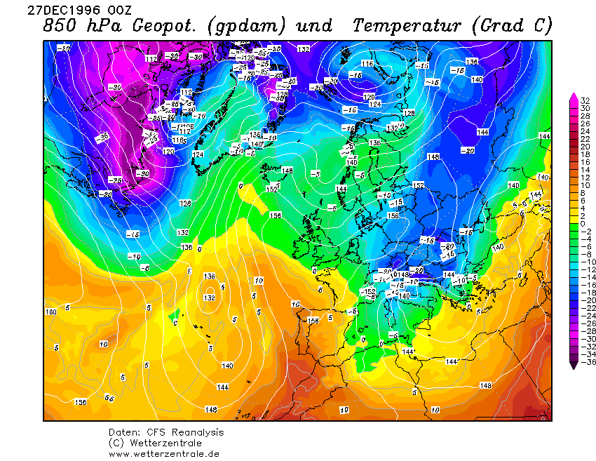 Im Winter 2012/2013 waren Luftmassen mit -10°C in 850 hPa und weniger häufiger über Mitteleuropa, wenn auch nur kurzzeitig im Alpenraum anzutreffen. Am 26.1.2013 befand sich zuletzt die -15 in 850 hPa über dem Norden von Österreich.