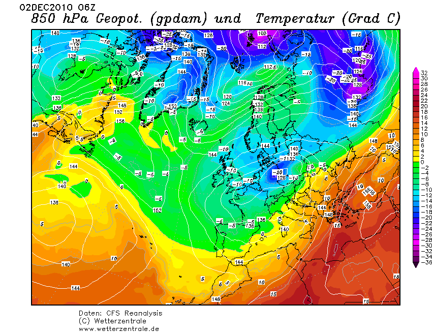 Auch der Dezember 2010 begann mit -20°C in 850 hPa über Ostdeutschland.