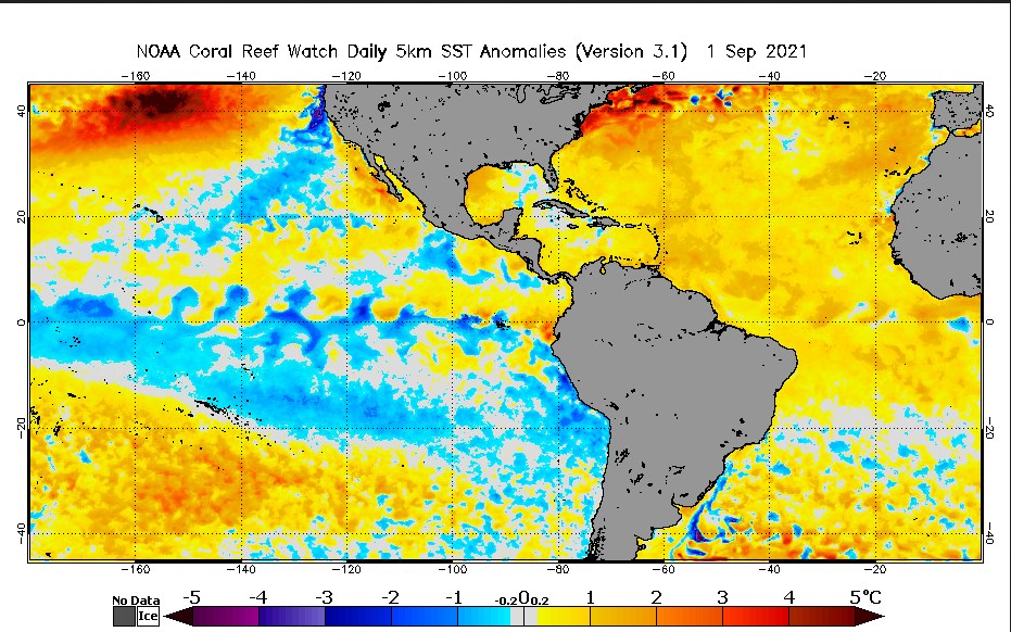 Am Tag vor dem Starkregenereignis lagen die Meeroberflächenwassertemperaturen um 2-3°C höher als im Durchschnitt – durchaus konsistent mit der westdeutschen Flutkatastrophe, wo das Mittelmeer ebenfalls 2-3°C zu warm war. Da während dem Starkregen in New York Südostwinde wehten, die feuchtwarme Luft vom Meer her advehierten, konnte die höhere absolute Feuchte auch „verarbeitet“ werden.