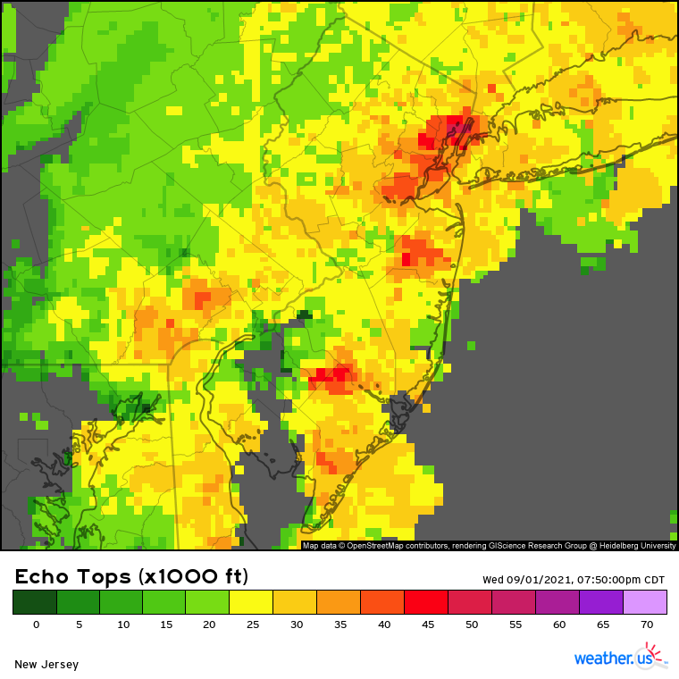 Radarreflektivität im Großraum New York am 01.09.21, 08 Uhr pm CDT (= 02.09.21, 04 MESZ) Quelle: weather.us