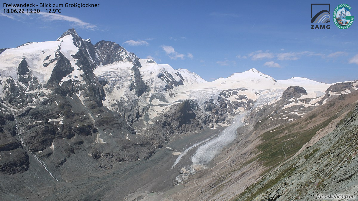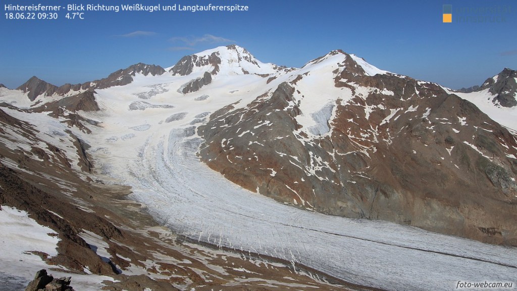 Einzelne Hitzerekorde locken niemanden hinter dem Ofen hervor, speziell, wenn sie mit Badefotos betitelt werden. Doch kommt die frühe Hitze gleichzeitig mit großer Trockenheit, und zwar auf mehreren Ebenen: In den Alpen verlief der Winter mild und schneearm. Die Gletscher wiesen im Spätwinter bereits eine viel zu geringe Schneedecke auf. Der meiste Schnee fiel im Hochwinter bei Sturm und wurde über die Kämme und Gletscher geweht. Hintereisferner und Pasterze bieten einen traurigen Anblick (Quelle: foto-webcam.eu).