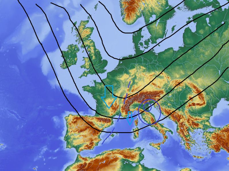Die Lage der planetare Welle hat diesen Sommer bestimmt, dass wir für Wochen oder Monate unter Zufuhr heißer und trockener Luftmassen lagen. In diesem Zeitraum heizte sich das Mittelmeer stärker auf als normal, weil die Umwälzung des oberflächennahen Wasserbereichs durch Stürme und Niederschlags fehlte. Der niederschlagsarme Winter sorgte für weniger Schmelzwassereintrag in die Alpenflüsse und bescherte dem Bodensee einen niedrigen Wasserstand, was dessen Erwärmung ebenfalls befeuerte. Mit den Kaltluftvorstößen nach Süden fallen die Temperaturunterschiede zwischen Boden bzw. Wasseroberfläche und Höhe entsprechend intensiv aus. Wärmeres Wasser bedingt damit sowohl höhere Instabilität als Feuchtezufuhr. Kommt dazu ein Tiefdruckgebiet, sind alle Zutaten für heftige Schauer und Gewitter gegeben.