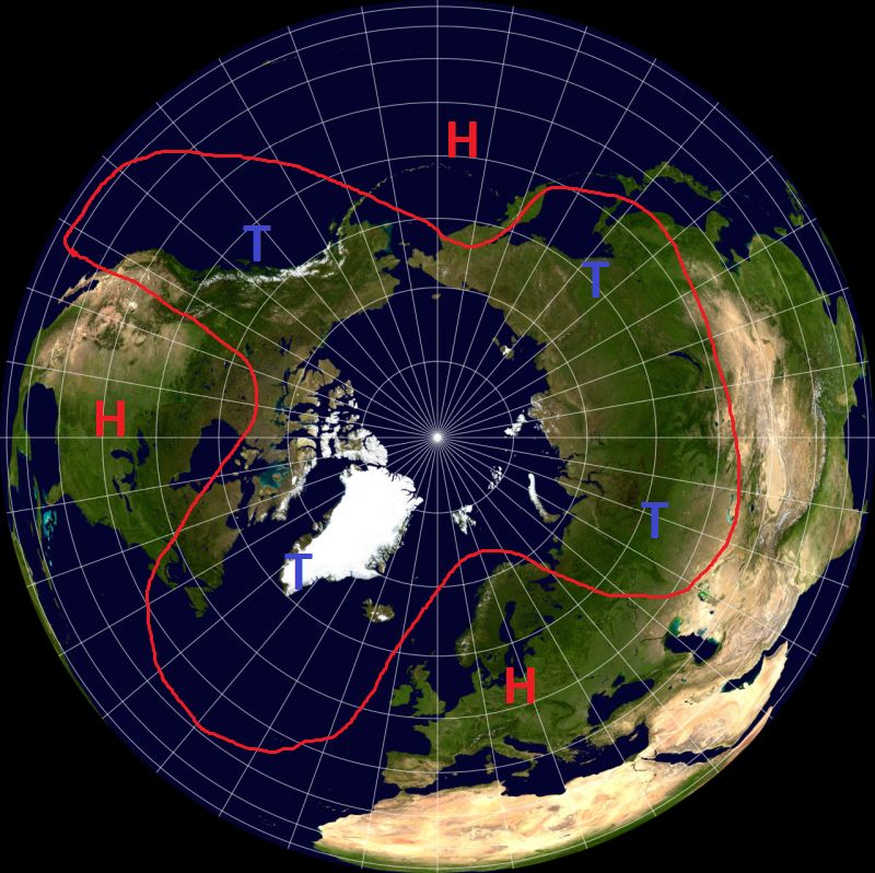 Rossbywellen-Zahl: 3 – über Asien, Europa und Nordamerika