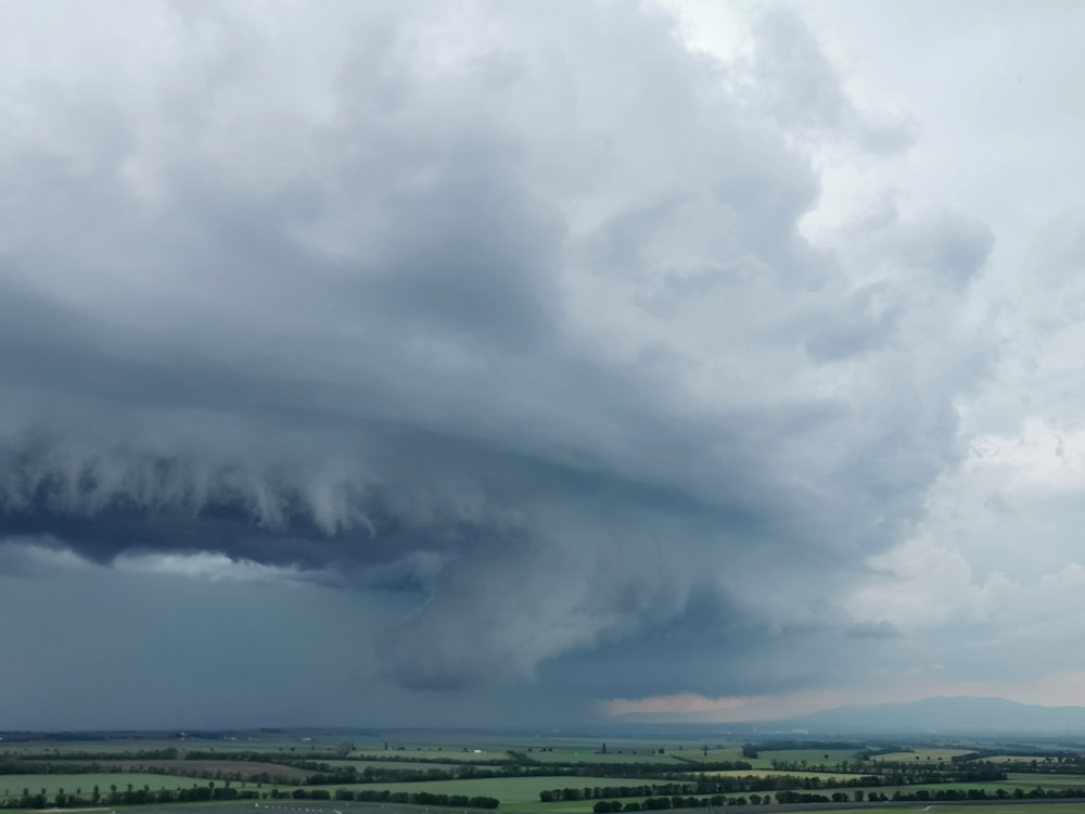 Seit jeher bringen Gewitter aus Süden oder Osten im östlichen Flachland starken Regen und eine hohe Wolken-Erde-Blitzrate. Grund dafür ist der erhöhte Flüssigwassergehalt, wenn die Luftmasse aus dem Mittelmeerraum bzw. vom Balkan kommt. Die Wetterlage vom Samstag, 25. Mai, war von einer lange Zeit ortsfesten Bodenwindkonvergenz gekennzeichnet, die sich vom Burgenland bis zum Weinviertel erstreckt hat. Dadurch zogen ab Mittag bis zum späten Nachmittag insgesamt vier Gewitter am Flughafen Schwechat und in der Umgebung durch. Das erste Gewitter gegen 13 Uhr war optisch am Spektakulärsten mit einer ausgeprägten Böenwalze. Die tatsächlichen Windspitzen waren eher moderat, mit 50-60 km/h. Der Kern zog hierbei im Südwesten und Westen von Wien durch, der Flughafen wurde nur gestreift. Weitere Gewitter zogen eher knapp östlich durch, bis sich die Konvergenzzone generell nach Osten verlagert hat. Für mich persönlich war die Optik des aufziehenden Gewitters die Ästhetischste seit der LP-Superzelle vom 24. Juni 2021.