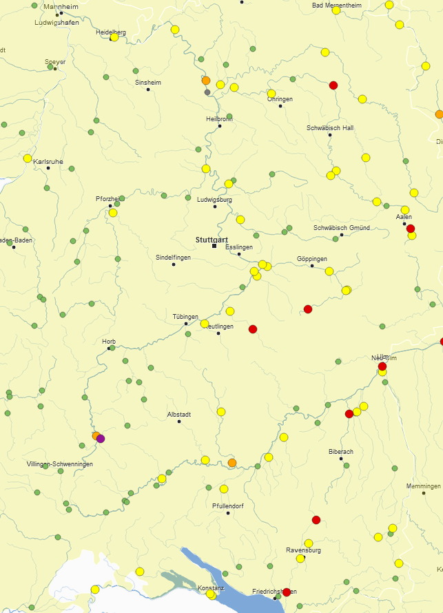 Hohe Wasserstände werden auch aus Baden-Württemberg aus dem Einzugsgebiet des Neckars gemeldet.