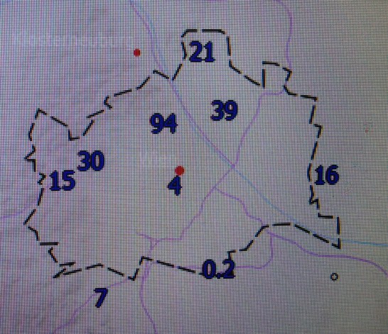 Im Süden von Wien blieb es fast trocken, in der Inneren Stadt fielen nur 4mm, 5km entfernt in Oberdöbling hingegen 94mm. Stärker betroffen waren noch die westlichen Wienerwaldbezirke sowie Floridsdorf, aber mit deutlich geringeren Regenmengen.