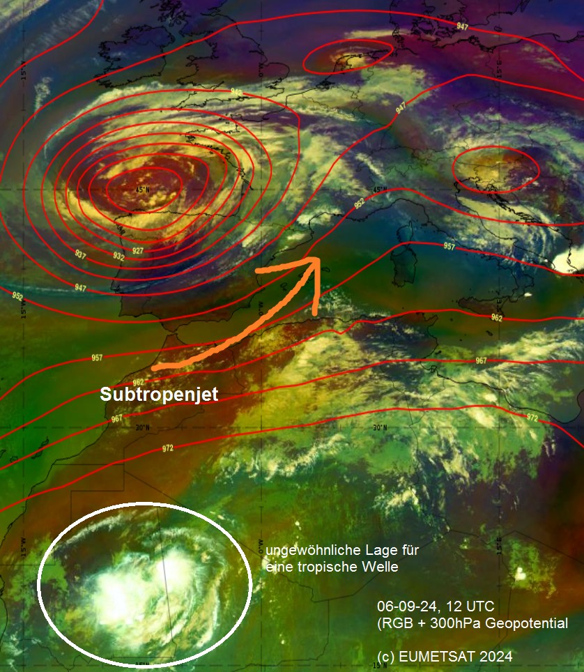 Das erhöhte Feuchteangebot lässt sich also mit sowohl mit dem afrikanischen Feuchteangebot aus der Sahara (!) als auch mit dem zu warmen Mittelmeer erklären – in beiden Fällen eindeutig auf Klimaänderungen zurückzuführen, wie sie langfristig durch die globale Erderwärmung erwartet werden. Dies zeigt dieser PWAT-Loop des schottischen Meteorologen Scott Duncan sehr eindrücklich.