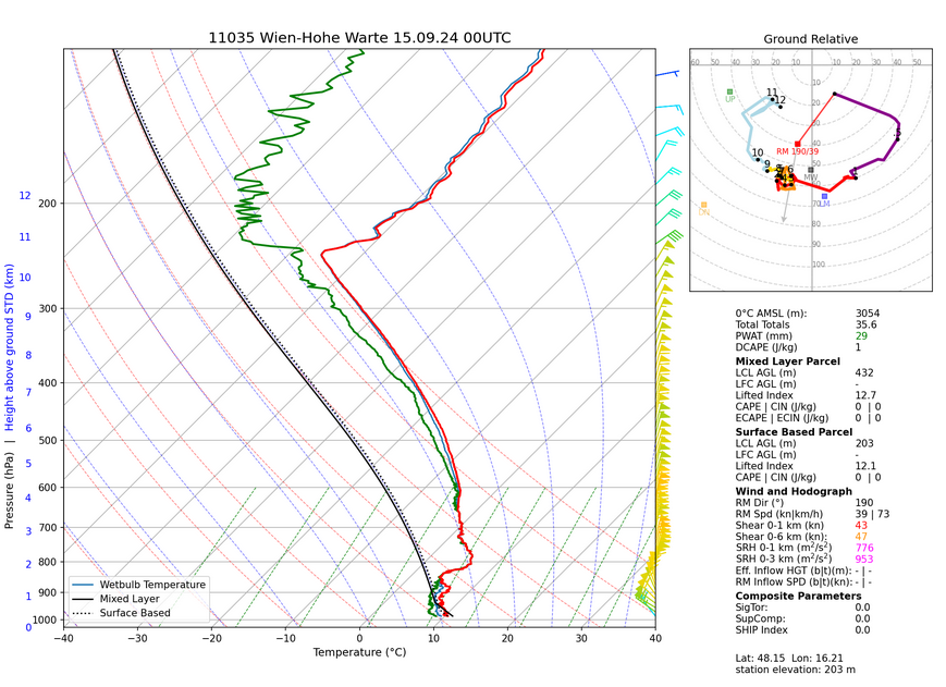 Radiosonde von Wien-Hohe Warte am Sonntag, 15.09.24, 00 UTC