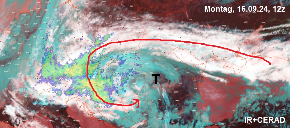 Loop vom Infrarotsatellitenbild mit Radarbild überlagert (12-16.09.24, Ungarische Facebookseite)