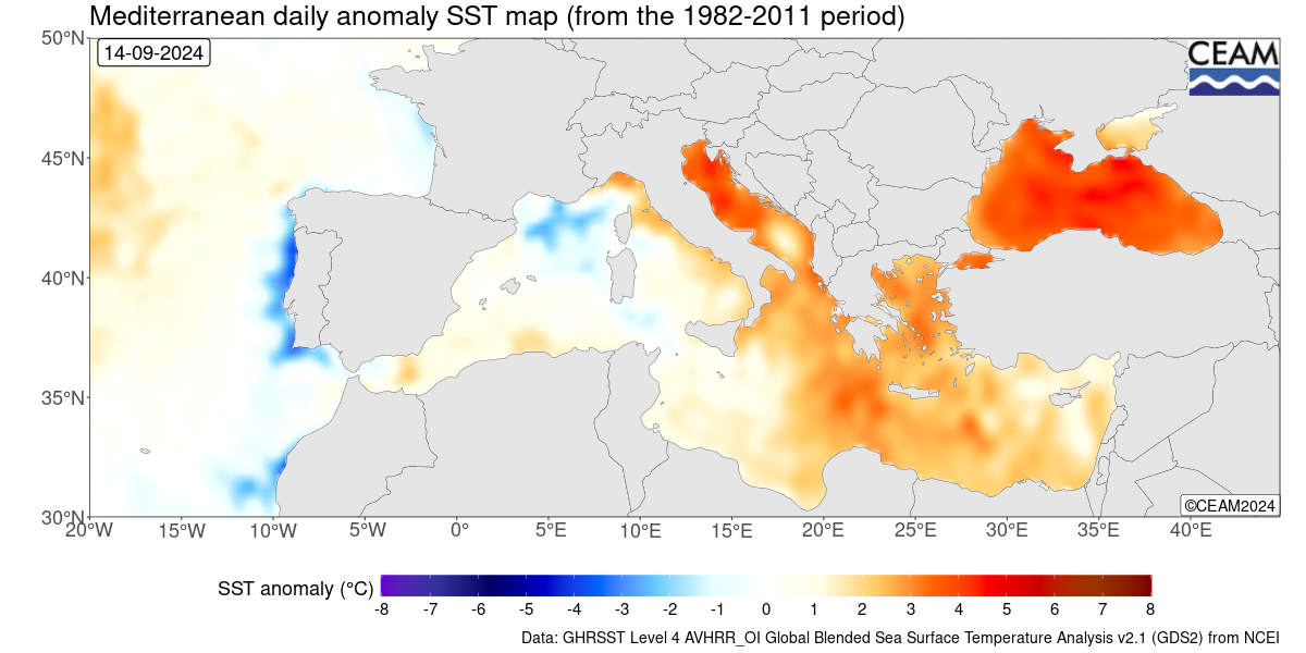 SST Anomalien im Mittelmeer und Schwarzem Meer (CEAM)