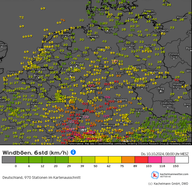 Spitzenböen vom Donnerstag, 10. Oktober 2024, 02-08 Uhr MESZ (kachelmannwetter.com)