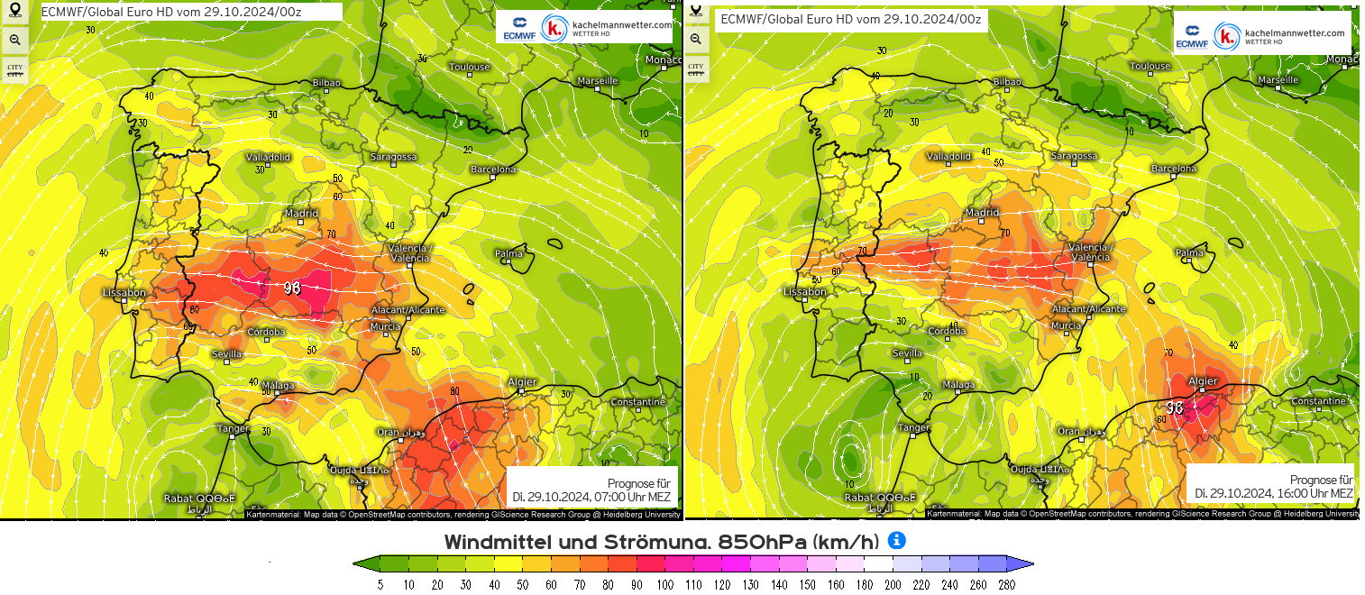 Epilogue: New flood warnings today with total rain amounts up to 200mm until midnight for the region south of Valencia (according to AROME), heavy flooding reported in Puerto de Mazarrón, Murcia.