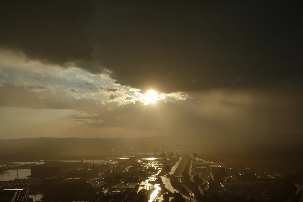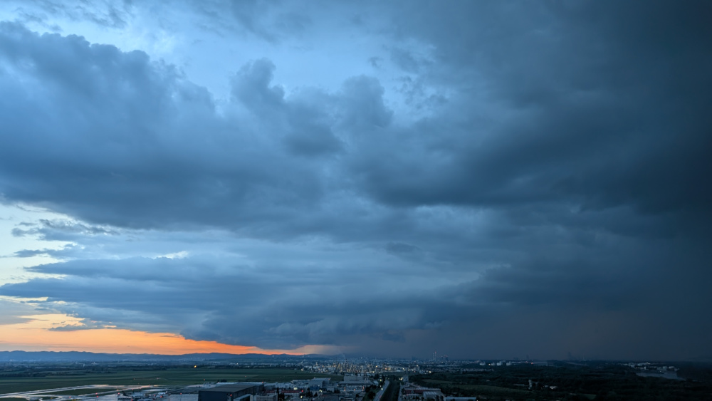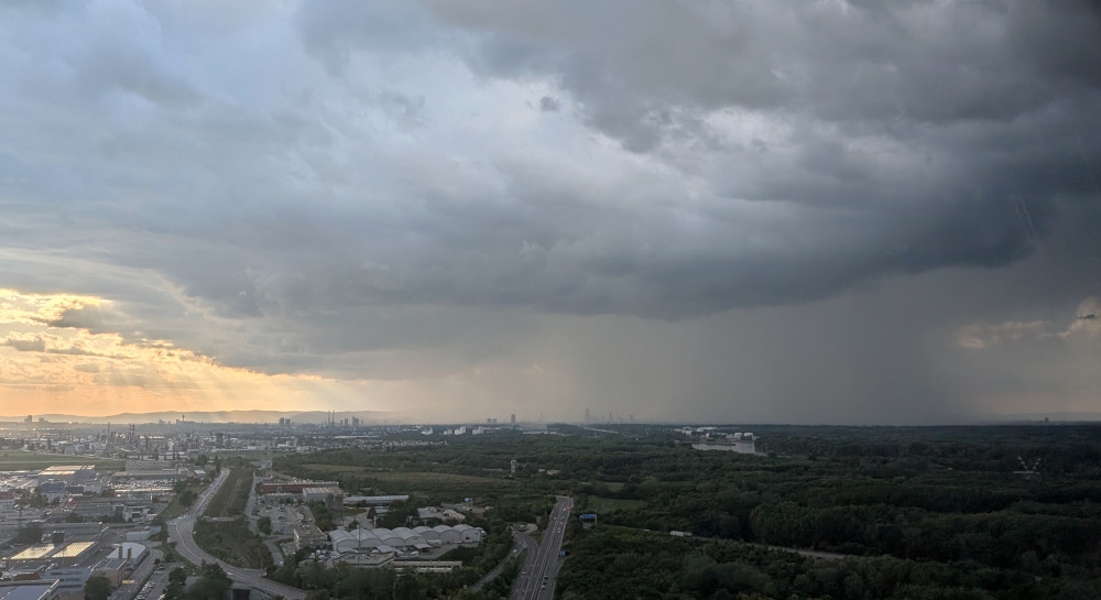 Die erste Zelle brachte einen kleinräumigen, aber intensiven Schauer über Wien, löste sich beim Näherrücken aber sukzessive auf. Das brachte mit der rückseitig durchbrechenden Abendsonne tolle Lichtstimmungen hervor: