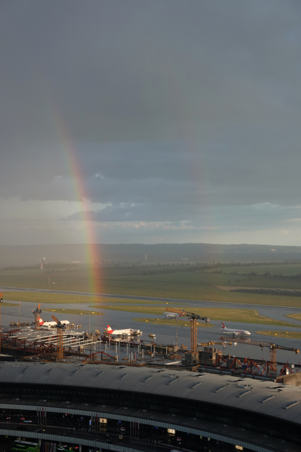 Zum Abschluss ein doppelter Regenbogen über dem Flugvorfeld:
