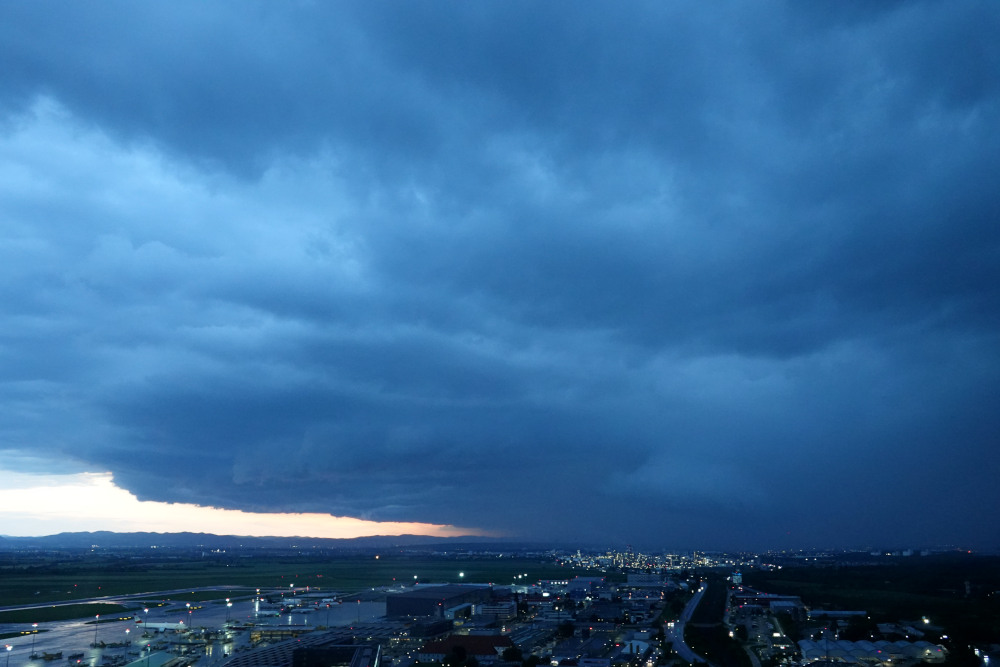 Kurz darauf wurde der Böenkragen (Cumulonimbus arcus) über dem Südwesten der Stadt sichtbar – dort gab es Böen bis 30kt (ca. 54km/h).