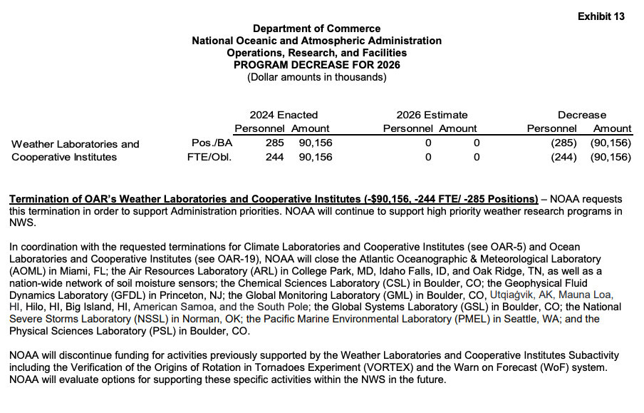 So ein Ereignis lässt sich nicht Tage im Voraus punktgenau bestimmen, aber die Forschung dazu, es möglichst früh möglichst präzise vorhersagen zu können, steht unter Trump auf dem Spiel, ist nämlich ebenfalls von massiven Kürzungen betroffen, denn einige sehr hochaufgelöste Modelle der NOAA hatten das Ereignis bestens antizipiert, aber mit dem vorgeschlagenen NOAA-Budget würden sie beendet werden.