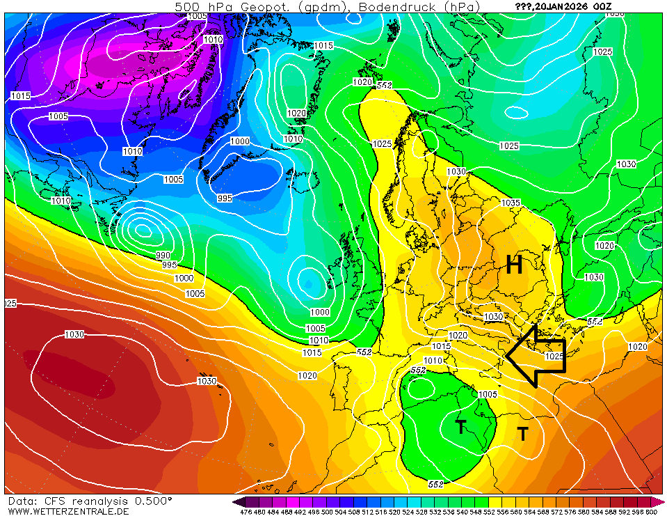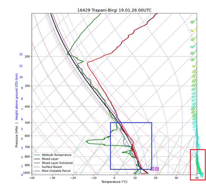Die Vorgeschichte für die Unwetterlage war eine weite Austrogung über Nordafrika durch einen Kaltluftvorstoß am Wochenende 17/18. Jänner 2026. Das HARRY genannte Bodentief war nie besonders heftig, sein niedrigster Kerndruck lag bei 997hPa laut GFS-Analyse (20. Jänner 2026, 18 UTC südöstlich von Sizilien). Die besondere Brisanz entstand durch die gleichzeitige Konstellation mit einem kräftigen Bodenhoch über dem Balkan, das durch den ausgedehnten Kaltluftpolster entstanden ist. Dadurch konnte sich über einen Zeitraum von rund 60 Stunden ein starker Druckgradient einstellen, und nachfolgend eine starke Ostströmung. Diese hat heiße Luftmassen aus Libyen und Ägypten in die Tiefdruckzirkulation einbezogen und führte durch den langen Weg über das Mittelmeer zu einer Feuchteanreicherung und Labilitätsaufbau (zahlreiche Gewitter). Das Tiefdruckgebiet selbst war kein klassisches Sturmtief mit rapide fallendem oder steigendem Luftdruck (isallobarische Druckänderung).
