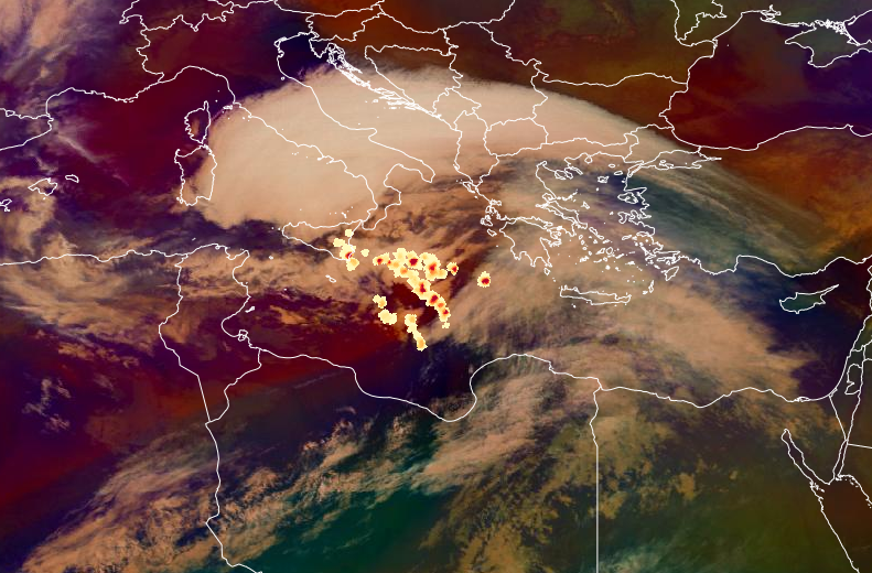 Das Satellitenbild ließ jedenfalls eine klassische Sturmtiefstruktur mehr als vermissen. Es gab eine kleinräumige Bodentiefentwicklung über Tunesien mit markanter Konvektion, sowie eine Okklusionsbildung über dem italienischen Stiefel.