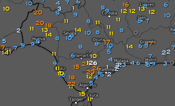 Der Extremwert 126mm stammt von Grazalema, sonst wurden nur 10-26mm verzeichnet.