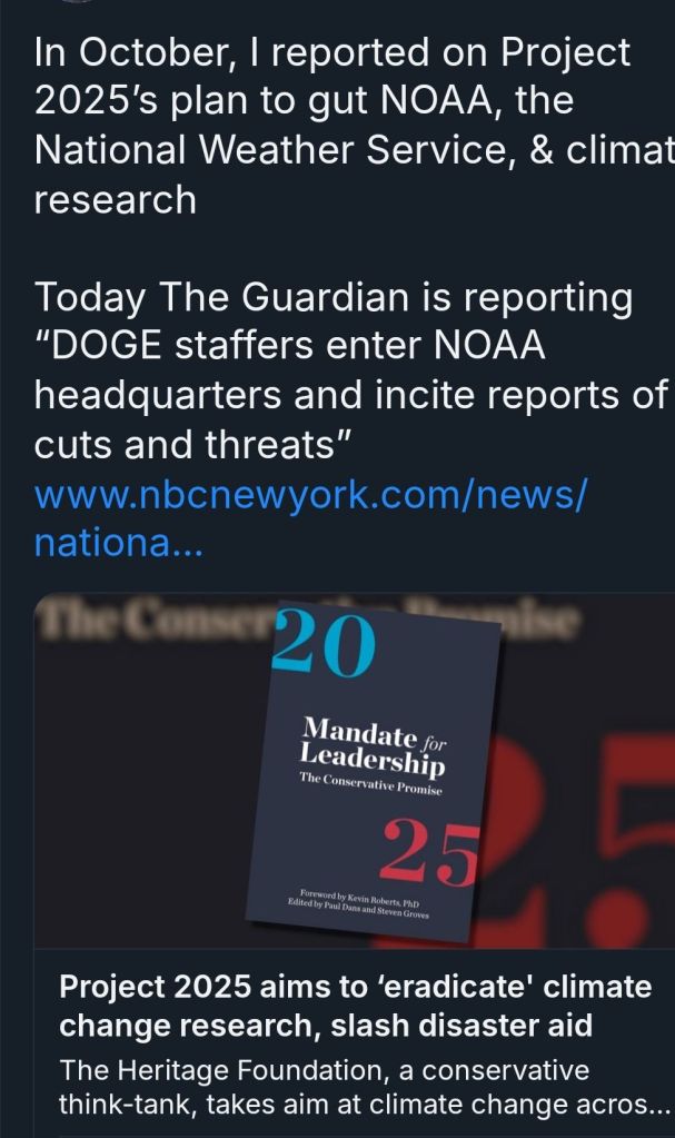 Projekt 2025 sieht vor, die Klimaforschung auszulöschen. Damit wurde gerade begonnen.