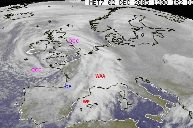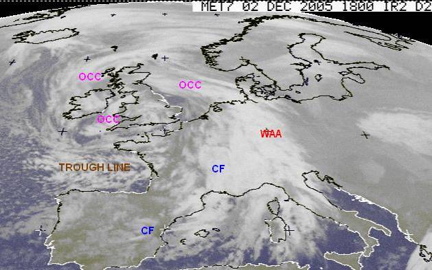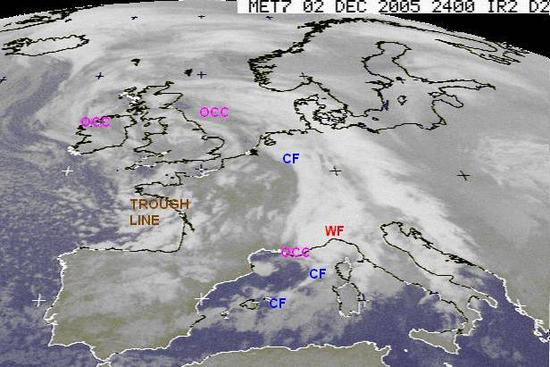 Folgende IR-Satellitenbild aus der Wetterzentrale verdeutlichen den Ablauf des Wettergeschehens am 2. Dezember bis in den Vormittag des 3. Dezembers 2005: