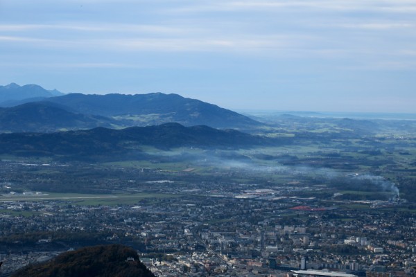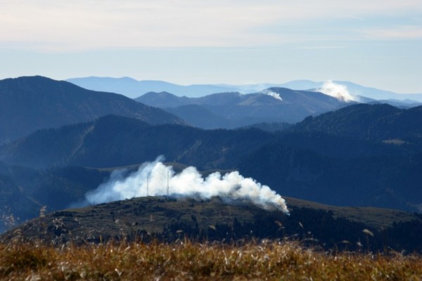 Welchen Einfluss derartige Inversionen auf die Entwicklung von Rauchschwaden haben, sieht man an den folgenden Aufnahmen gut. Die Ursache für die Feuer auf den Bergen war vermutlich das Abbrennen von Latschenkiefernfeldern zwecks Vergrößerung der Almwiesen (Nutztierweiden).