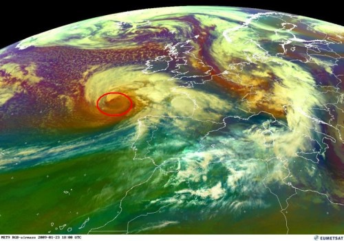 Am Donnerstag, 22. Januar 2009, entwickelte sich zwischen Island und Schottland ein ausgedehnter Orkanwirbel, der für die nachfolgenden Sturm- und Orkantiefs „Joris“ und „Klaus“ als Zentraltief fungierte.