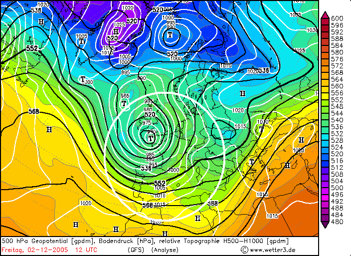 Beispiel 1) Südföhnlage mit Zentraltief über Westeuropa – 02.Dezember 2005