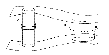 Im Fall A erfährt die Luftsäule eine Streckung, entsprechend nimmt Δz zu. Aufgrund der Erhaltung potentieller Vorticity muss die absolute Vorticity zunehmen (und damit auch die relative Vorticity). In der Mechanik geschieht dies durch die Verringerung des Radius und der Erhöhung der Winkelgeschwindigkeit (angedeutet durch die beiden Pfeile). Infolge der Streckung herrscht oben eine (isentrope) Divergenz und unten eine Konvergenz. Dies ist der klassische Fall einer Leetiefentwicklung(Alpen, Rocky Mountains).
